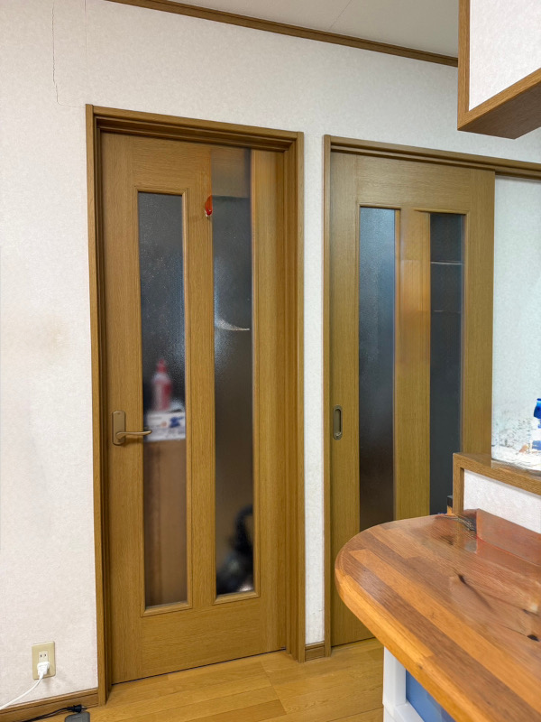 2箇所の開き戸を、光を通すガラス入りの大きな引き戸へ。