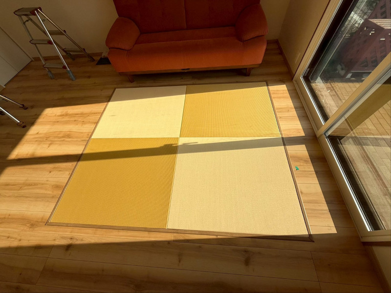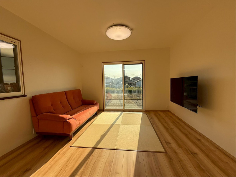 日当たりの良い窓際のモダンな畳スペースは、家族でゴロゴロ過ごせる憩いの場所に。